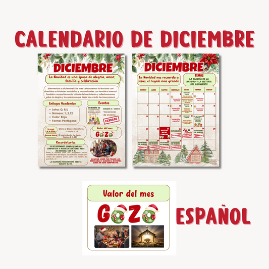 Calendario de Diciembre para mural de padres.(Inglés/ Español) Editable en canva